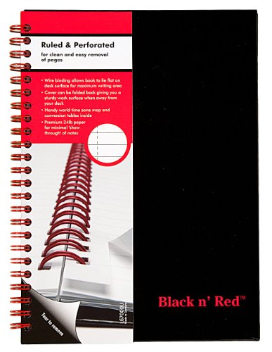 The Black n' Red notebook has strong twin-wire binding which allows the book to open flat or fold right back for ease of use. The hardback covers provide excellent protection. The notebook includes a contents page for quick referencing, a time zone map and conversion tables.